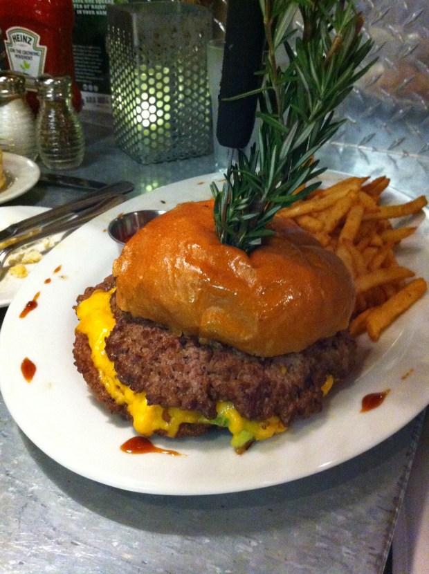 This is one of their stuffed burgers it is cheddar cheese, bacon & avocado stuffed in between two beef patties. Well as you can see it certainly is a sight to be seen. The burger is too big for the bun as you can tell, my friend had to eat the burger off the sides before she could really begin actually eating dinner. While it is a lot of burger that’s really all it was, a lot of beef, she said that the stuffing ingredients were lost inside with everything that was going on beef wise. She mentioned that it was a little undercooked and not seasoned as well as it could’ve been.